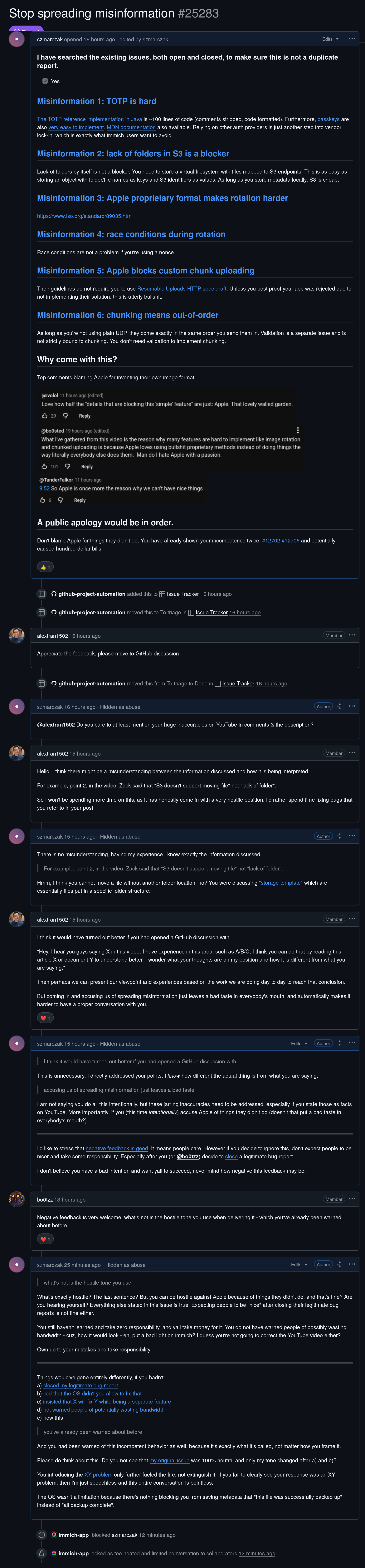 Yea sure Immich taking zero responsibility for possibly causing damages in hundreds of dollars and not warning their uses is fair, yeah, let them go. Maybe actually read the issues before judging? (oh noes, he blame them so he must be bad!)